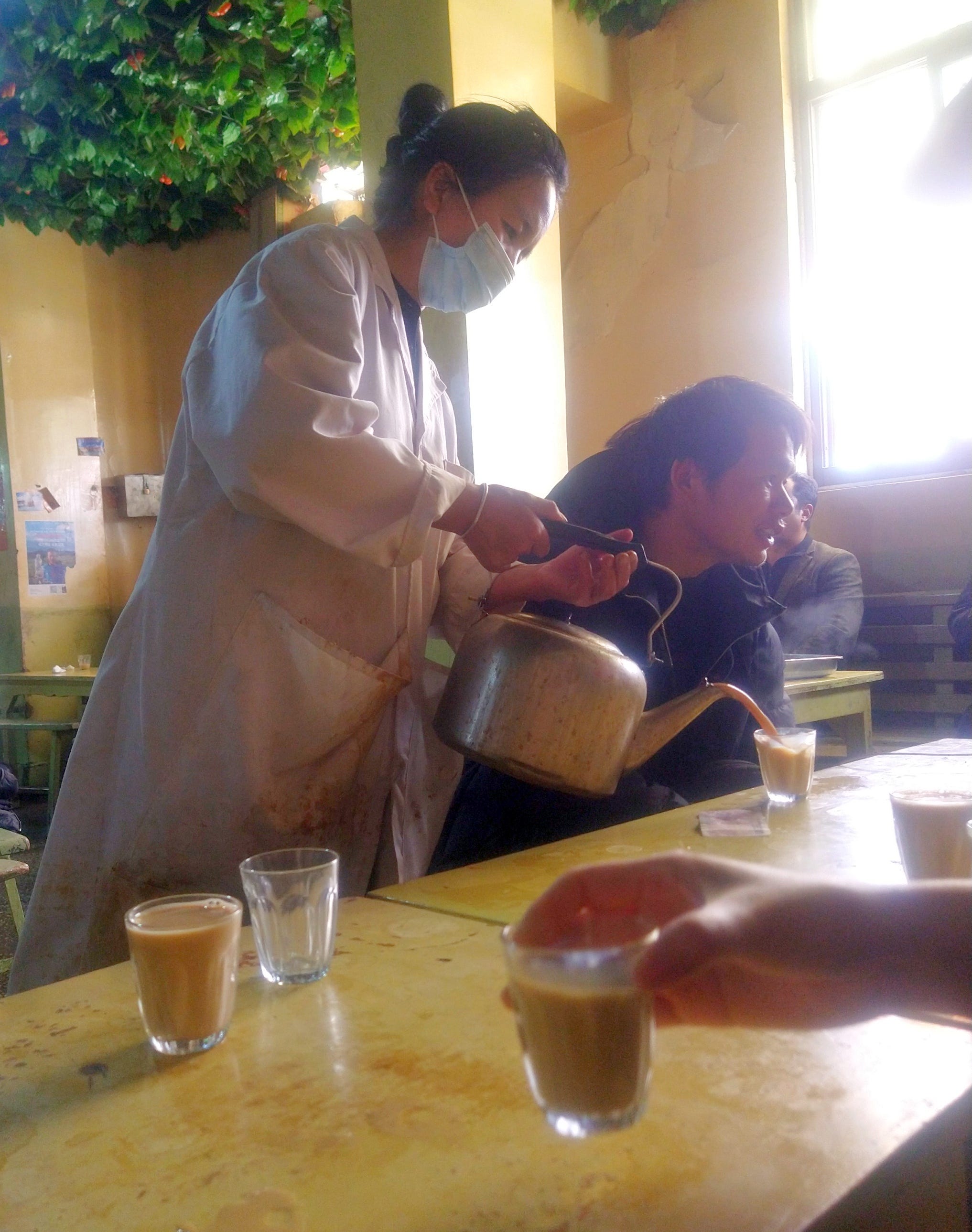 The further one gets away from Lhasa, the greater the feeling that one travels in time. In the provincial city of Gyantse, an important trade junction, we enter a ‘tea house’: a small cafe with a space for only four tables. It contains a stove, a shelf that seems to have been produced around the 1930s, and a couple of elderly gentlemen vigorously finishing their yak stew and yak butter tea, for which they paid around 1 dollar.